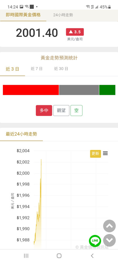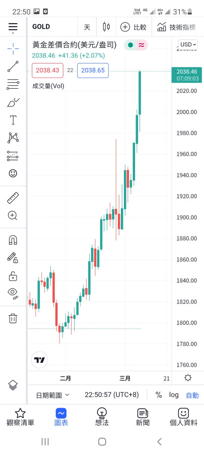 這樣的價錢會讓人心動,如果想再加碼,等金價突破2075創新高,最好還是等到跌回2000美元以下再建倉,每落40美元可加碼一次。