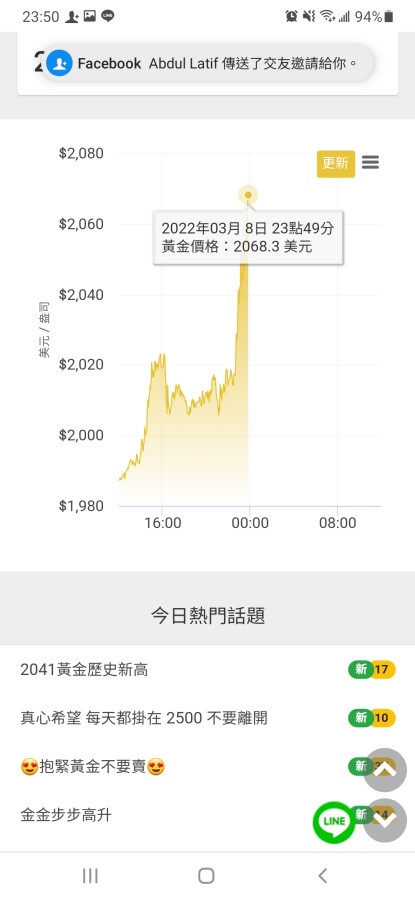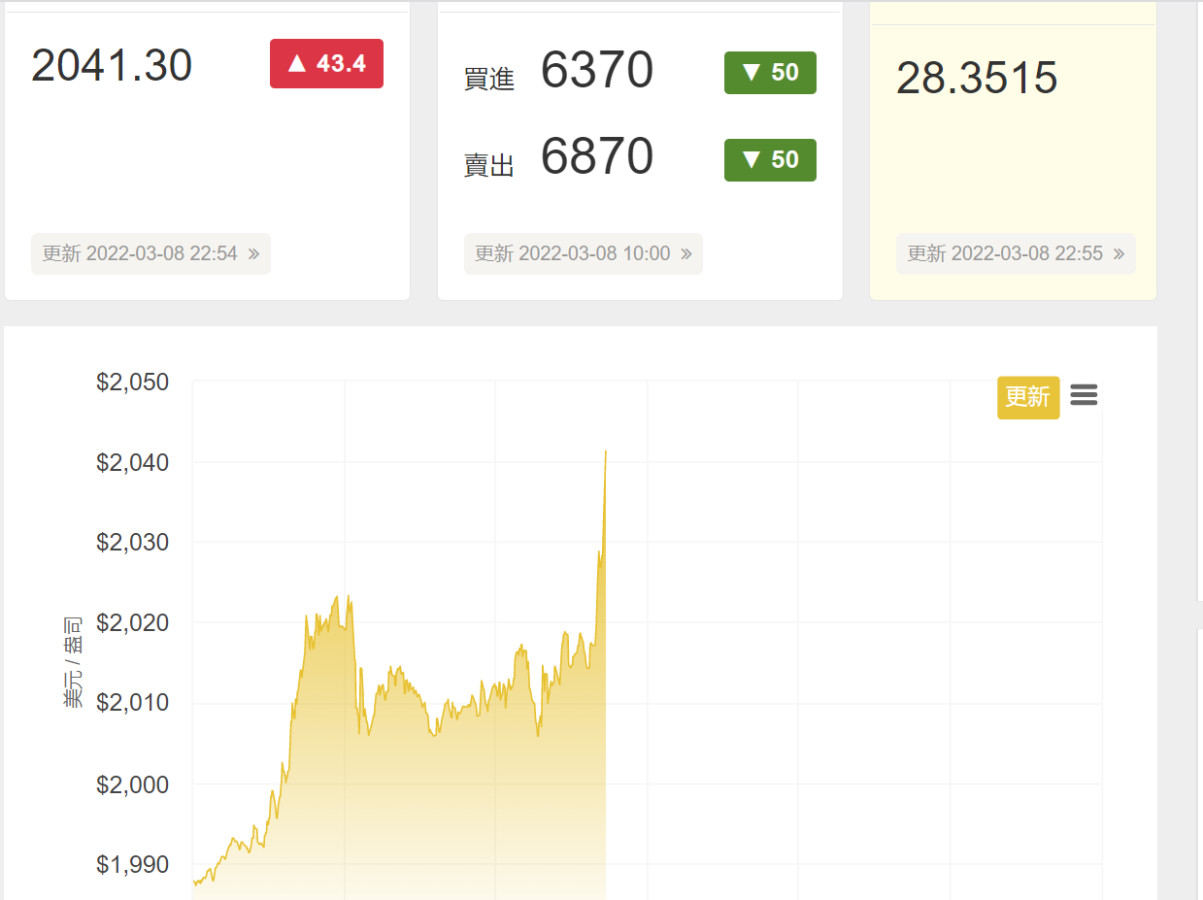 2022/3/8 p.m.10:55 黃金創歷史新高2041,打卡一下🎉🎉🎉
