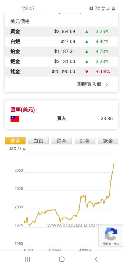 回覆 Quo:23時08分最高價位每盎斯2063美元沒...