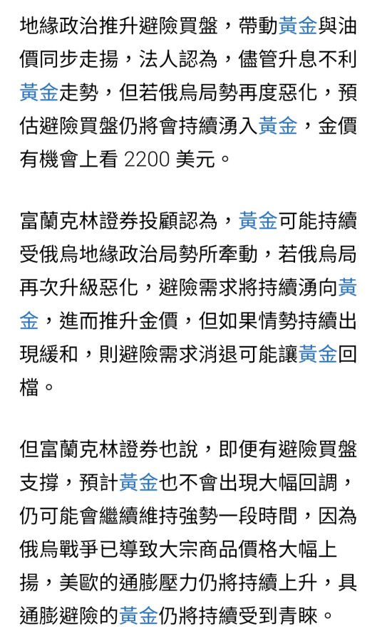 回覆 康康:所以投資黃金獲利的,多是對黃金有真愛,雪...