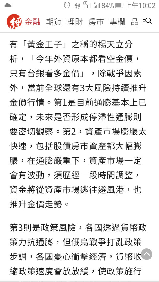 大部份的分析師都是跟紅頂白。年初大部份都看空黃金,走了貨。一場俄烏戰爭又將金價推上高點,是很多人始終不及的。