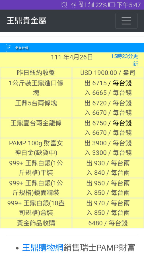 因為美元上漲,就算黃金跌到1900,也很難看到每錢6600的價了