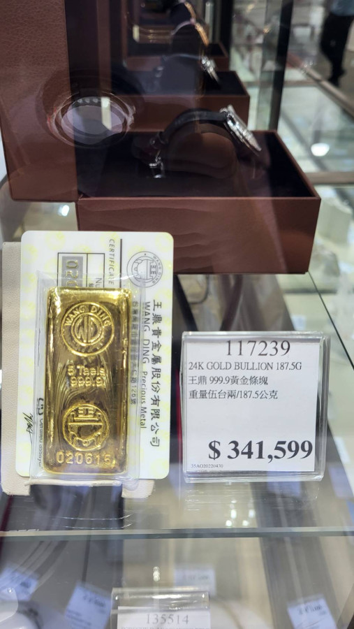 這個當初 Costco 開賣的時候,我有買(應該是2018年),24K王鼎5台兩金條買入價格 235,000~238,000。現在已經到了 341,000...