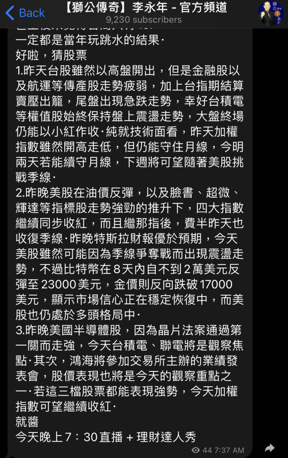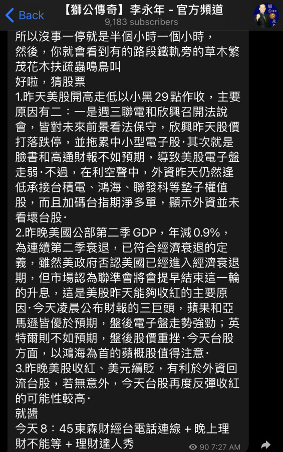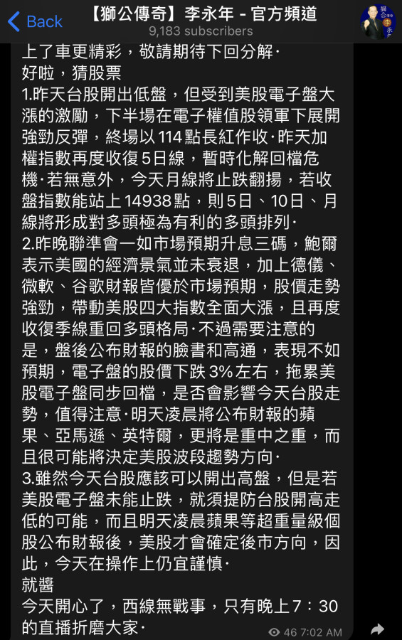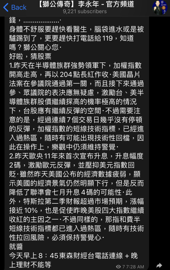 另外 國安糖漿的目的是在穩盤...不是帶大家炒股....