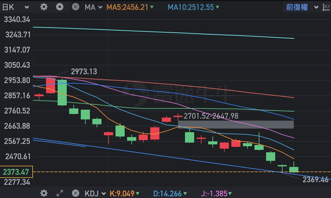 那條線是從 3633.14開始跌 (2022.03.29~2022.9.23)