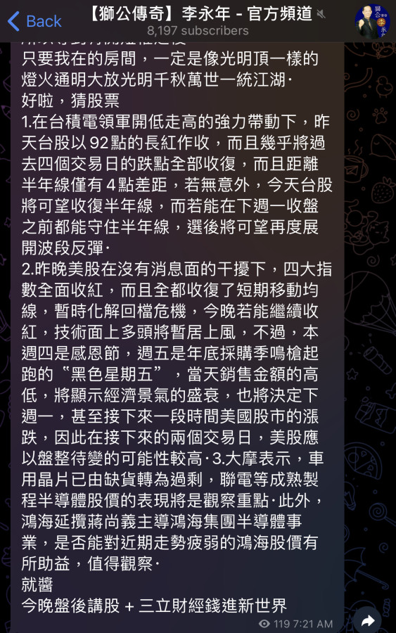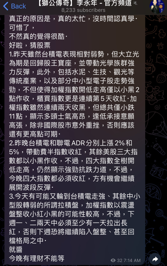 主席到尾盤的時候....鼻子摸摸...買幾張聯電...跟它賭一下...=..=" (扎心啊~~~