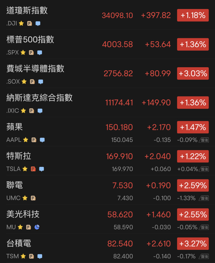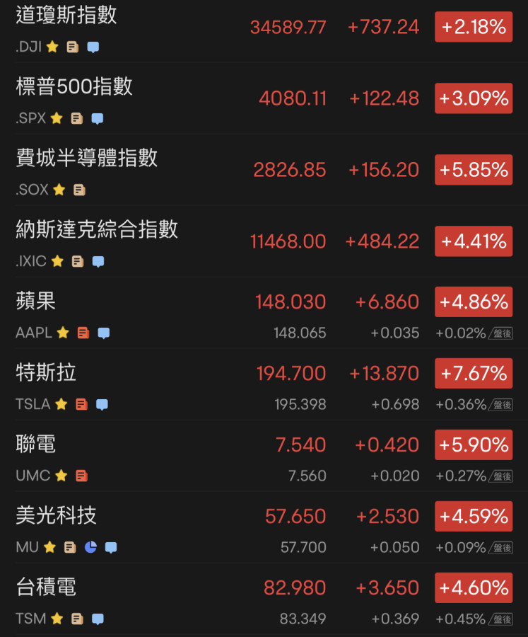 週五晚上的美股收盤了...CPI 數據公布的第二晚...繼續開紅發紅包..=.="
