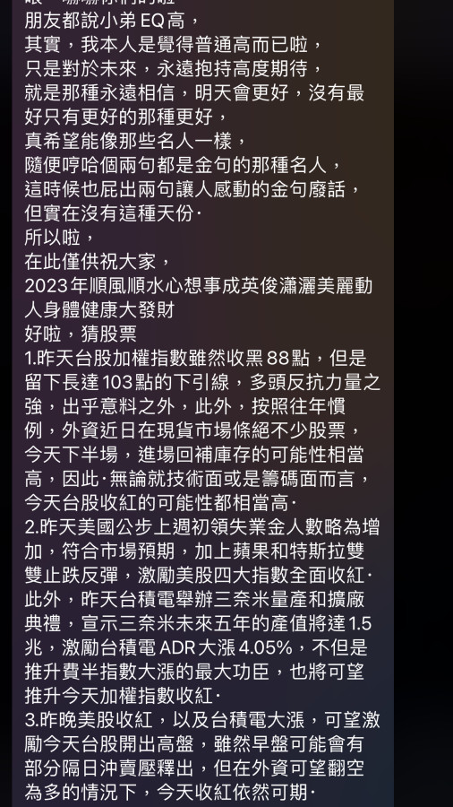回覆 黃金印象:主席,新年快樂🎆🎑✨2023繼續發大財💰...