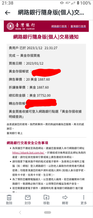 因為在台銀買的黃金存摺