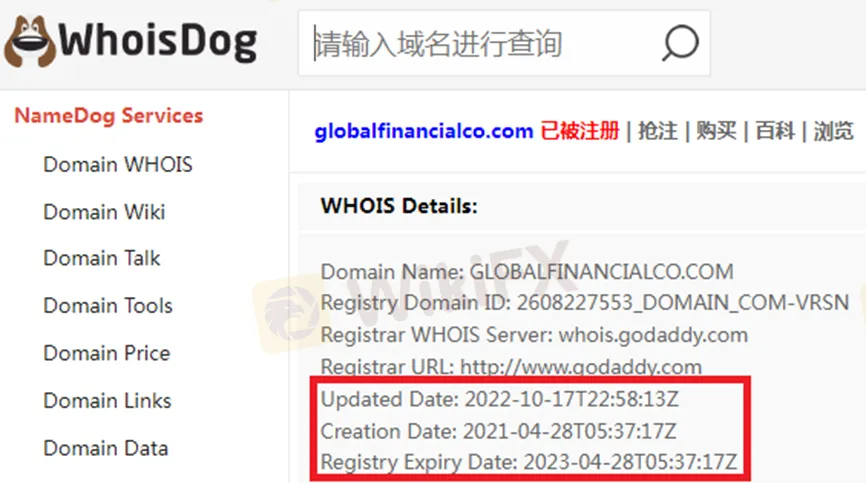 使用WhoisDog查詢這個網站,似乎進一步驗證了我們的推測:網站設立時間為2021/4/28,在2022/10/17曾經更新過,並且即將在2個多月後到期(2023/4/28),因此有相當高的詐騙疑慮,呼籲投資人遠離這個極具爭議的交易商,降低潛在的投資風險。
