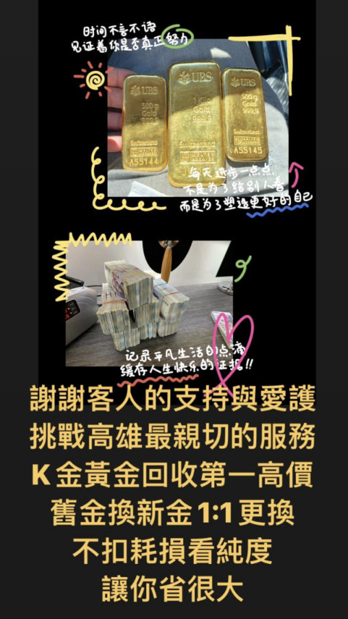 回覆 古馳林:最近想出脫之前投資跟長輩黃金約3.2公斤...