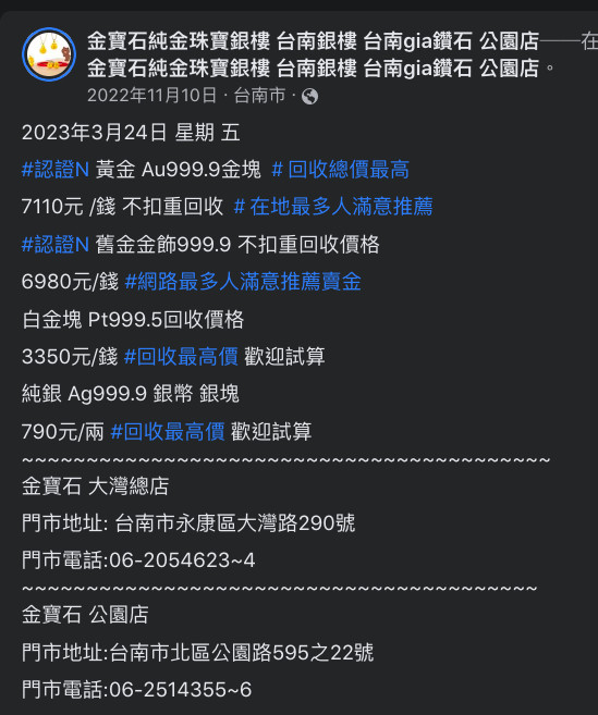 台北我推這家,貴金屬回收。沒有扣重量(在台北農安街)我剛去賣回來
