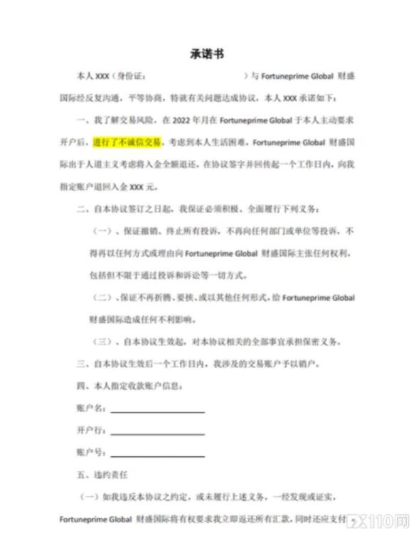 很快,匯友便收到了平臺方的回應,威脅他儘快協助終止以及撤銷所有的投訴,一旦全部撤銷後平臺會儘快處理其本金出金。此外,平臺還發來一份“承諾書”,要求匯友簽名確認,保證撤銷、終止所有投訴,不再向任何部門或單位等投訴,簽字確認後平臺才退回其本金,而一旦違反約定,平臺有權要求匯友立即返還所有匯款。