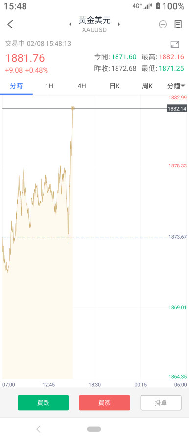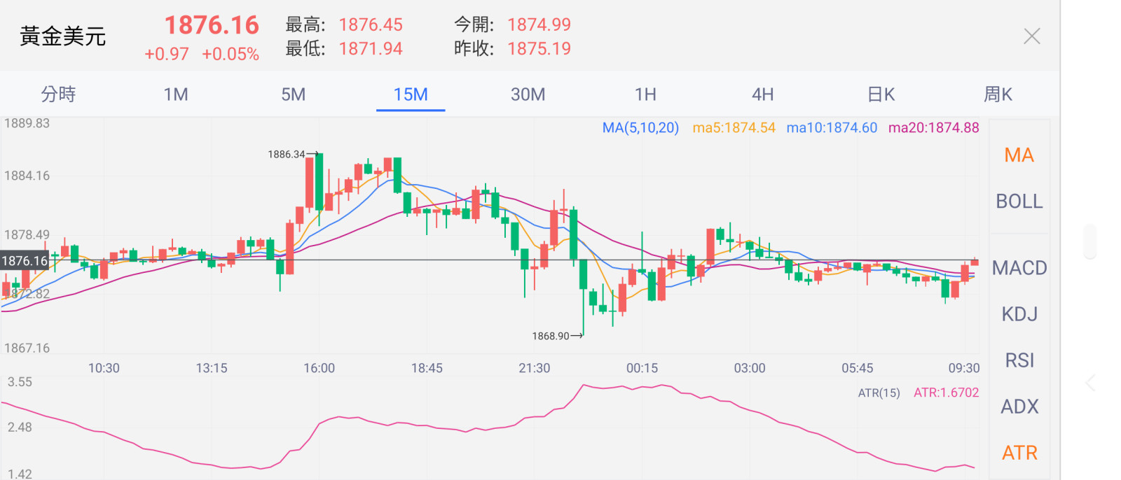 從早上到現在,金金一直在挑戰突破1878,超過5次,感覺如果突破,就可以更上一層樓,金金加油💪.