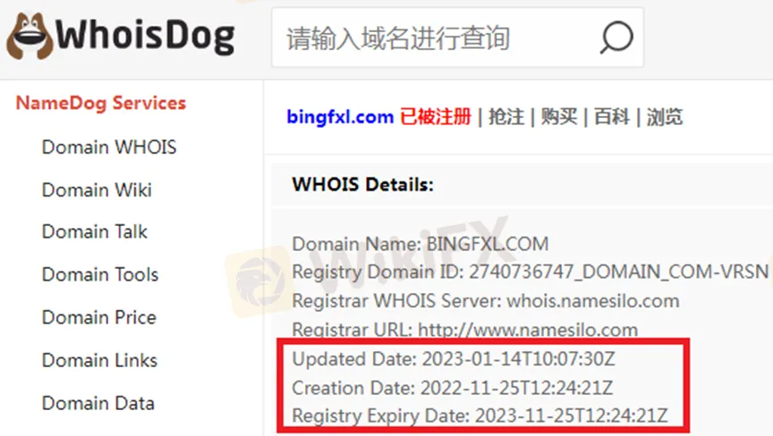 再以WhoisDog查詢這個網站,則可得知其設立時間為2022/11/25,在2023/1/14,到現在還沒有1個月,而且將在2023/11/25註冊到期,有極高的詐騙網站疑慮。有鑑於此,雖然目前外匯天眼並未收到相關的投訴爆料,我們的立場跟金融委員會一致,呼籲投資人遠離Bing Forex Ltd這家交易商,以免蒙受不必要的損失。