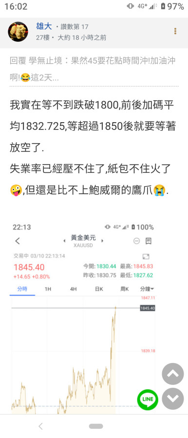 等不及跌破1800,前1~2天加碼金金,梭哈了🤪.