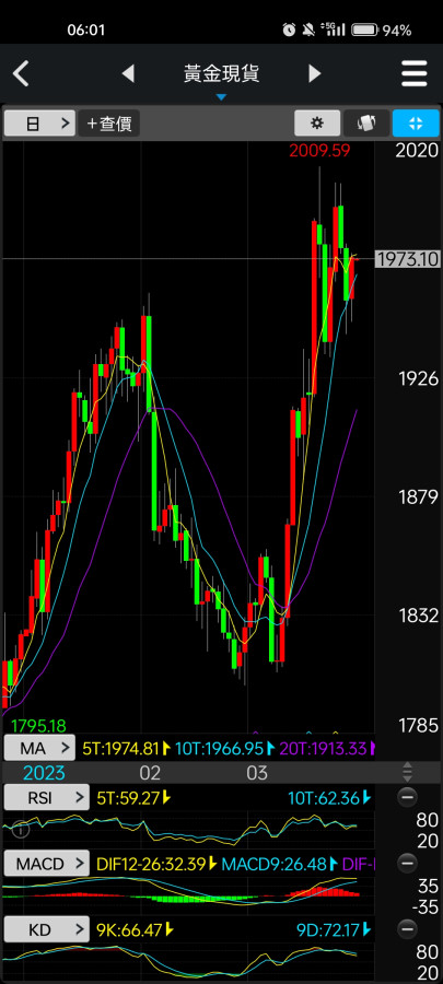 昨天的黃金收在五日線