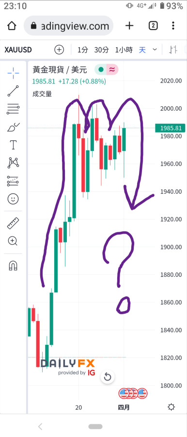 另外我在等三重頂形成,時間我猜4/7非農就業,希望目標還是1900~1920,我個人亂猜的😅.