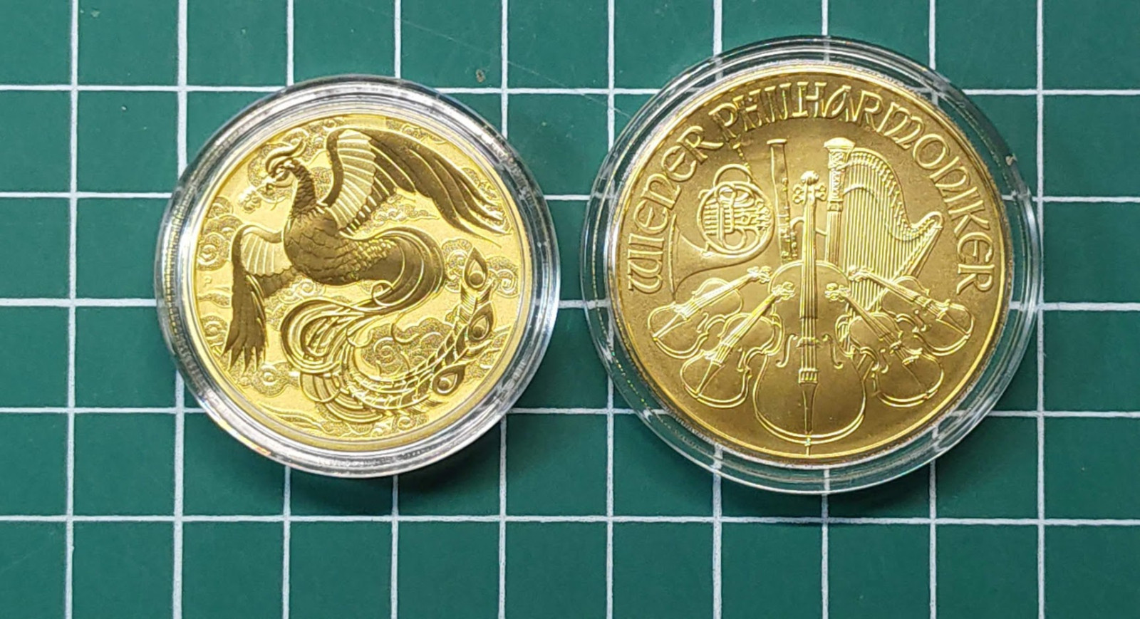 1枚是剛推出的鳳凰金幣 一枚是愛樂金幣