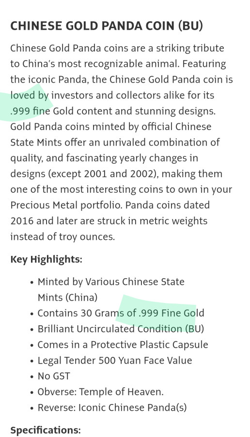 回覆 老爸:我之前沒特別注意熊貓金幣,看圖發現含金量...