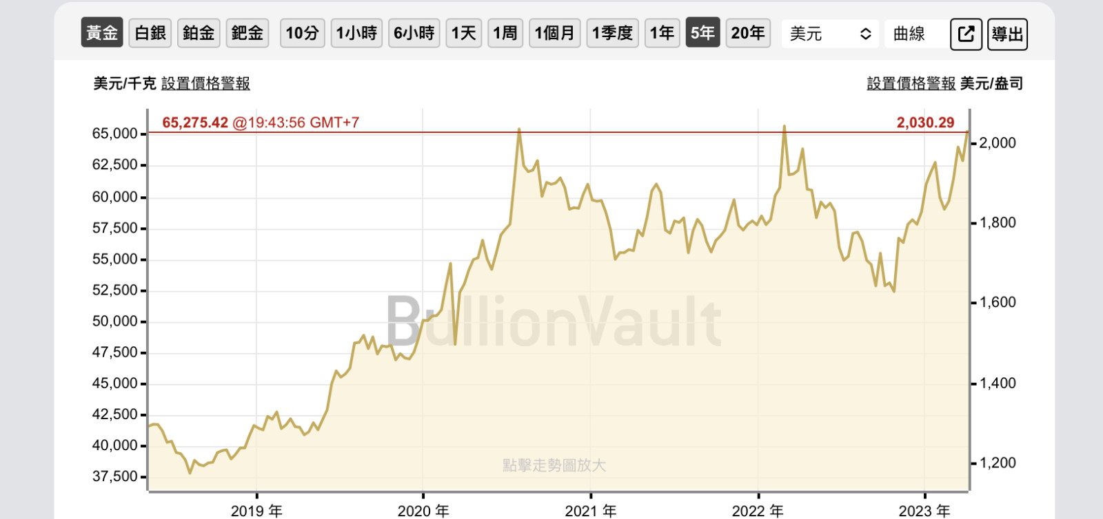 而盤中最高價則是 2020 年 8 月 7 日的 2089.20 美元喔!