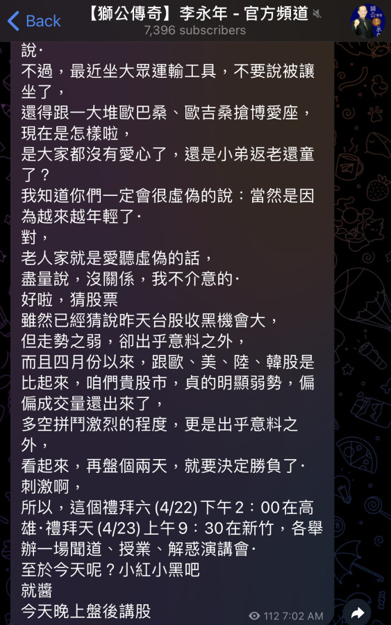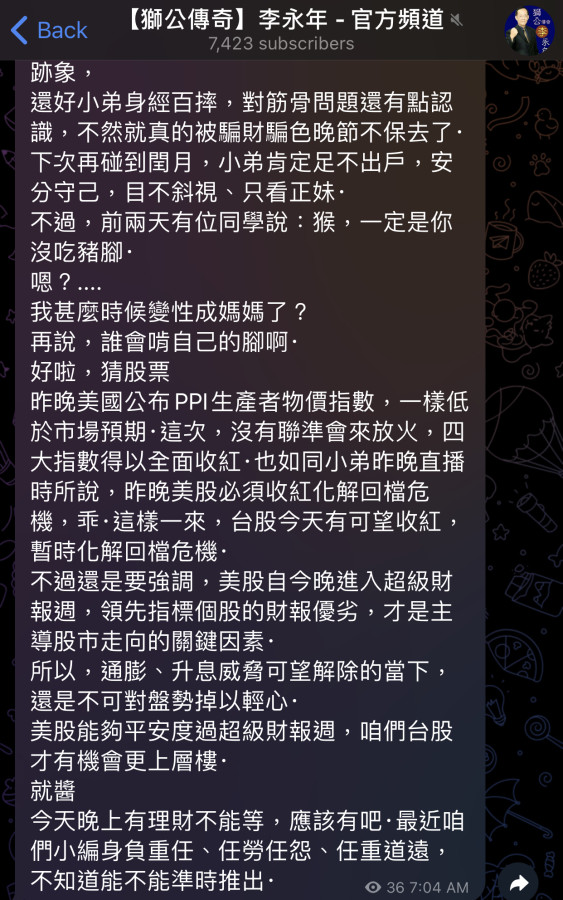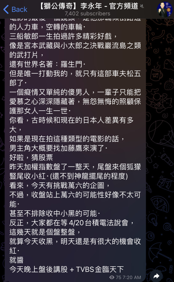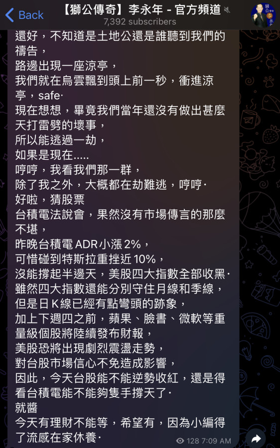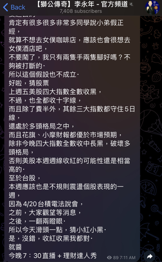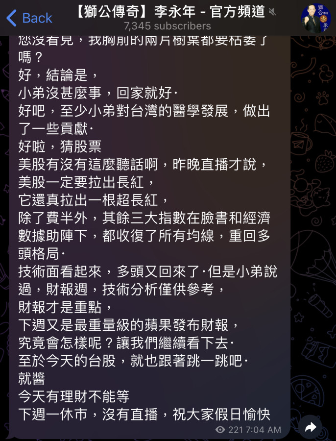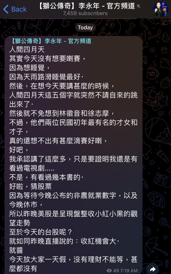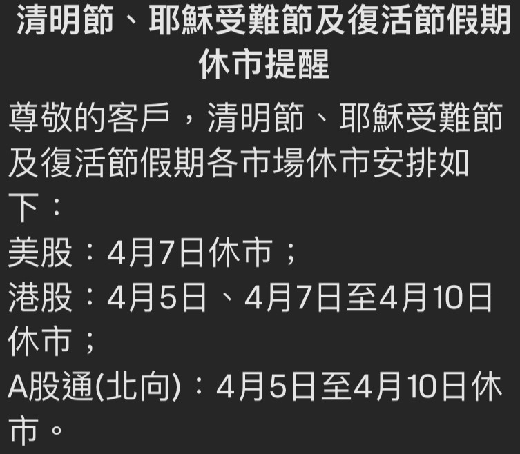 回覆 嗨爪主席:清明連假結束了....道瓊標普費半那斯達...