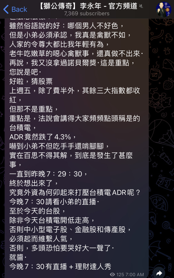 回覆 嗨爪主席:今天下午 台積電法說會...
