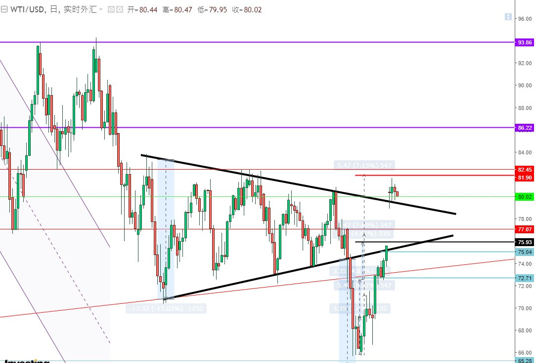 原油暂看三角上緣黑線支撑,缺口那麼大,不知何時補呢(先以缺口上方做支撐)