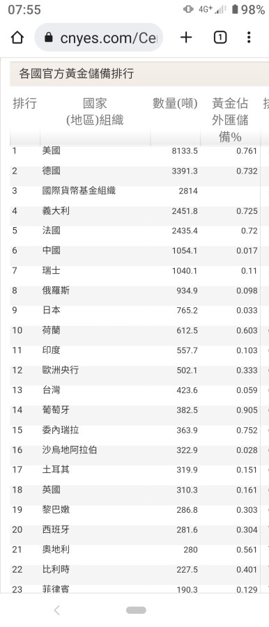 想不到台灣黃金儲備是第13名🙀,比中國少一半多一點點,這是不可思議🤭.