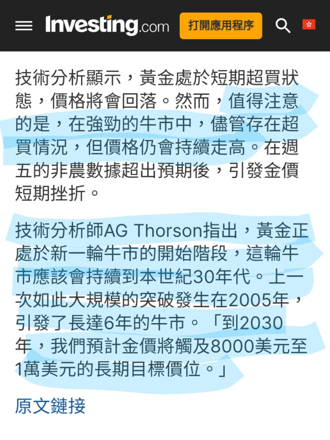 回覆 陽晨:漲到所有黃金投資人都持「實體黃金」的時候...