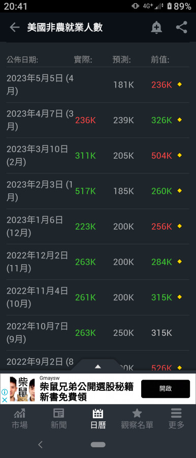 5/5非農就業人數預期181K,前值236K,拉的很長,類似今年2月,容易比預期好而被打趴😭.
