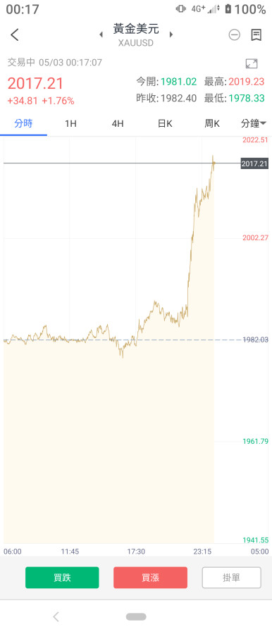 對,我買黃金ETF的認購,今晚可能升息,昨天以前黃金一直無法突破2000元整數關卡,原本打算停損出場,結果一睡起來,黃金突破2000,原本黃金認購虧到將近2成,變成接近損益兩平,要不是平時有騎單車練心肺,這種走勢我心臟一定受不了