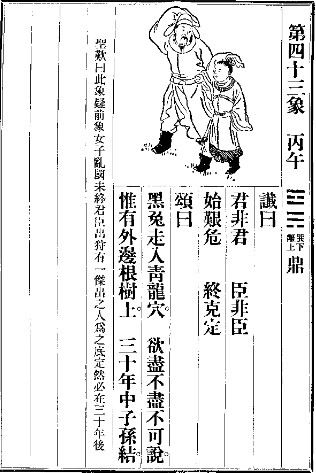 冬夜大對兩岸局勢的分析讓我想起推背圖第43象,兩者有相應之處,且容我胡謅一番: