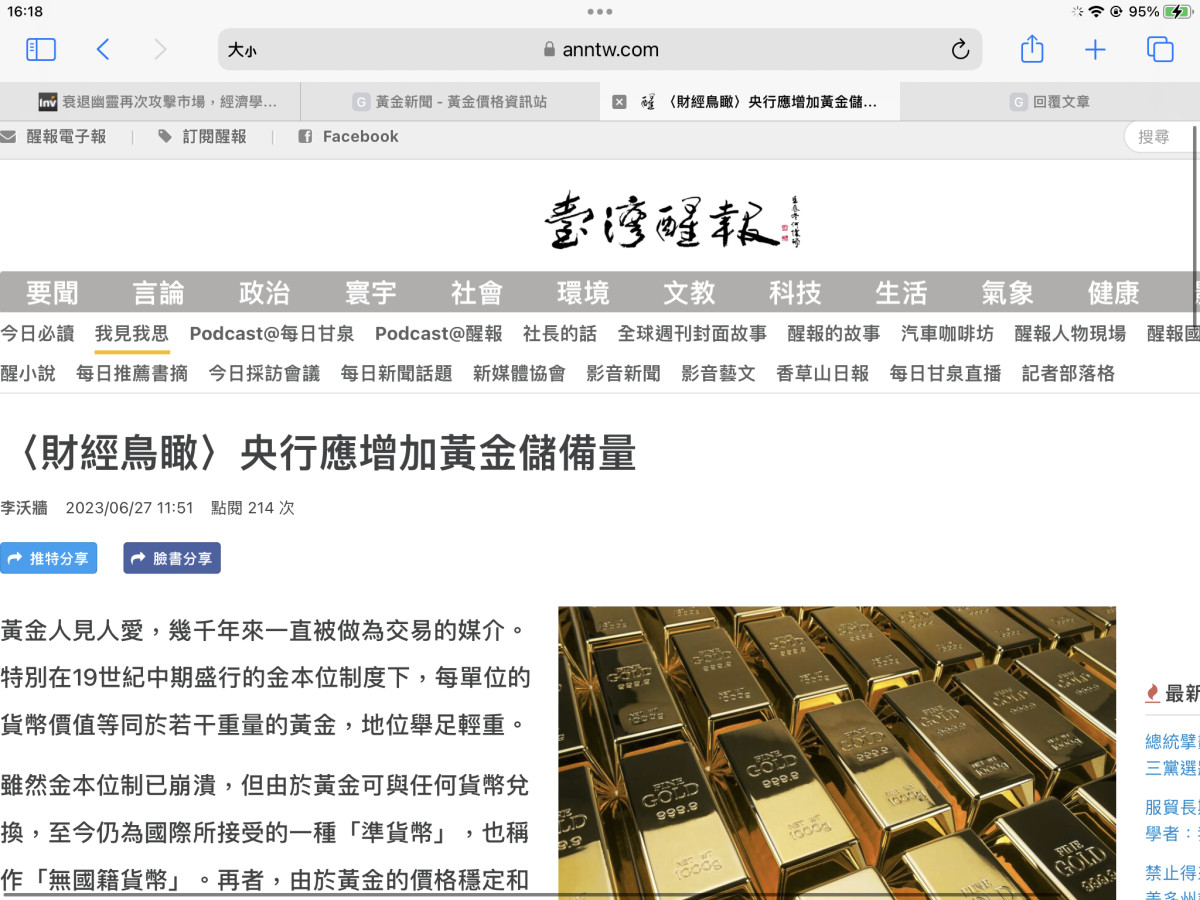 回覆 yesk:我也是認為買實體黃金比較保險,我還特地買...
