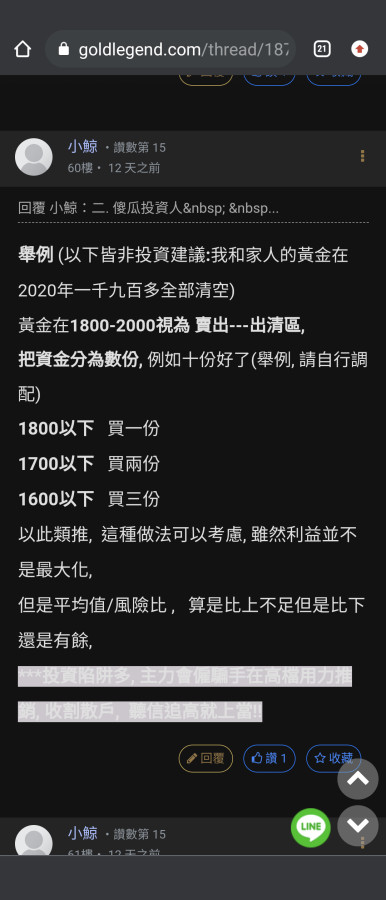 回覆 利金顫:各位前輩好請教一下,想要入手黃金,有去台...