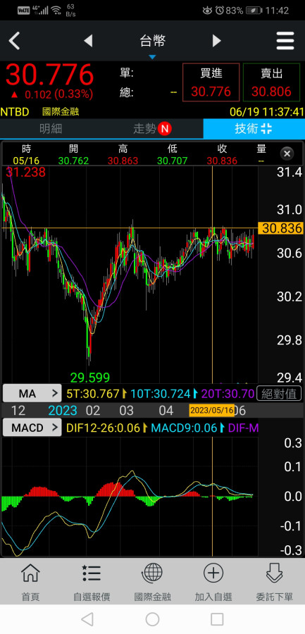 回覆 swish:台幣30.84整理型態如往上突破,則開始...