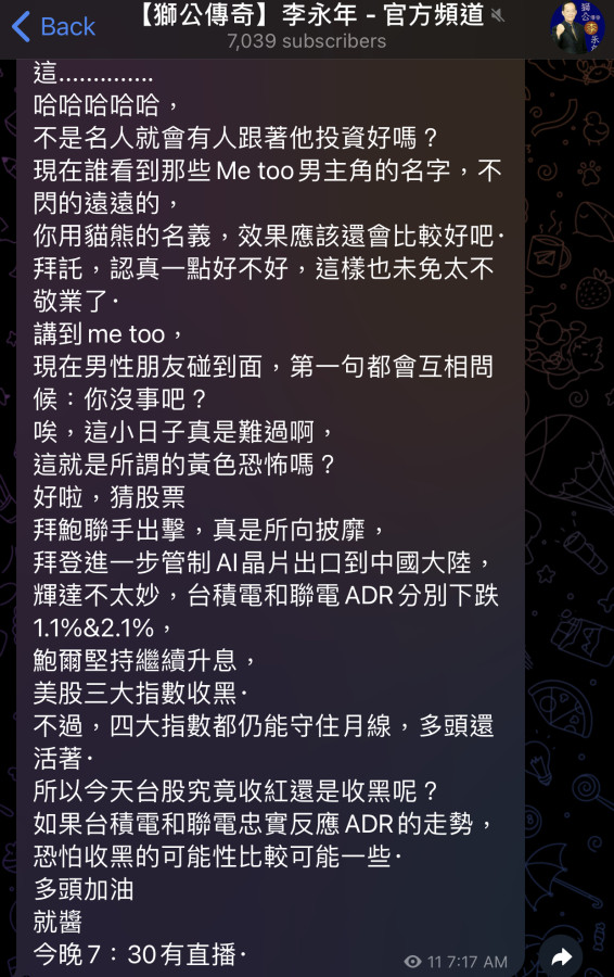 回覆 嗨爪主席:昨晚美股這種走勢台指夜盤都不跌?...