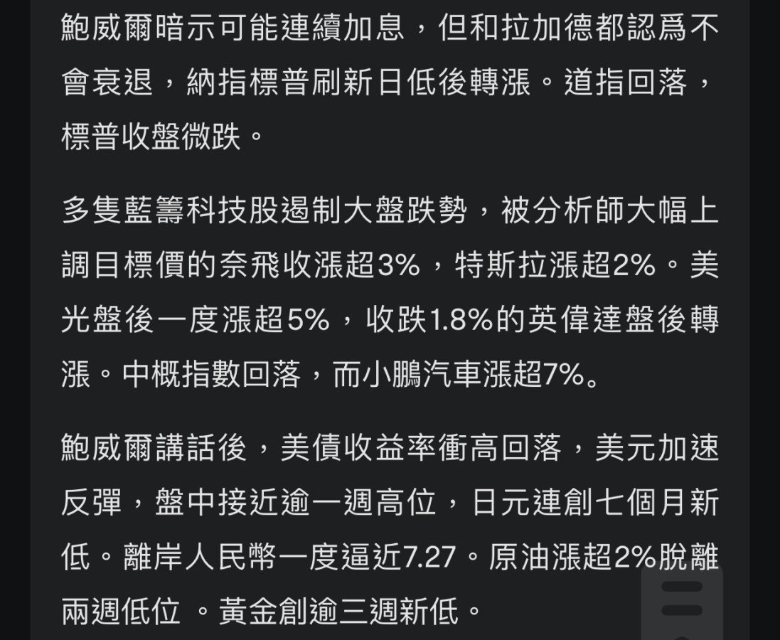 回覆 swish:升息是必然~沒有意外市場期待停止升息,甚...