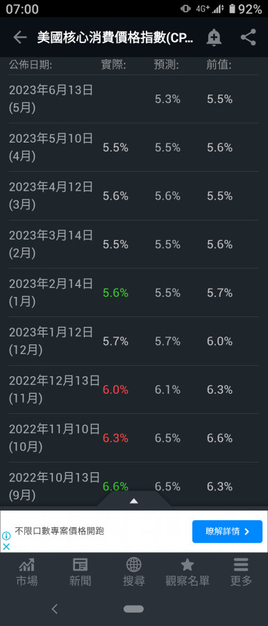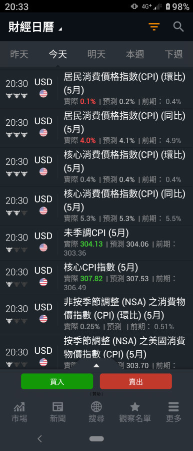 ⭐同個時間公佈有很多種,所以一個CPI項目不一定代表全部,會有平均值,數字怎麼來我就不知道了😱.