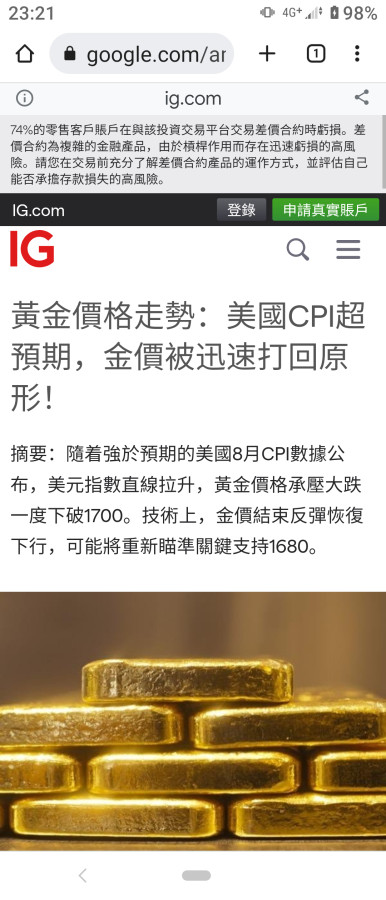 回覆 金捷:通膨高於預期,美元指數升,黃金承壓通膨低...
