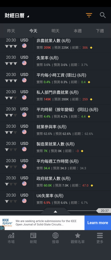 6/16~7/7美元/台幣漲了4.5角左右,急速上升,很多人都壓著在美元指數,美聯儲、華爾街最喜歡搞鬼,搞不好今晚大非農沒有全部超出預期的好,只要有一半的機會,金金絕對不會跌破1900,或許還有機會大反彈⬆️💪.