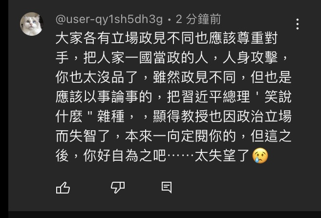 回覆 藍天蠍:看到最後,你令人失望了,原來政治立場真的...