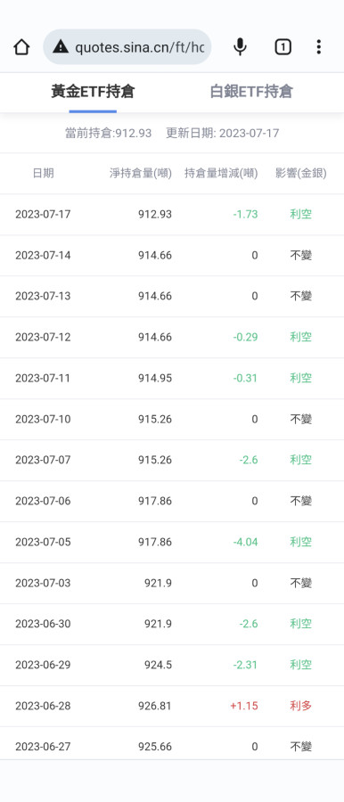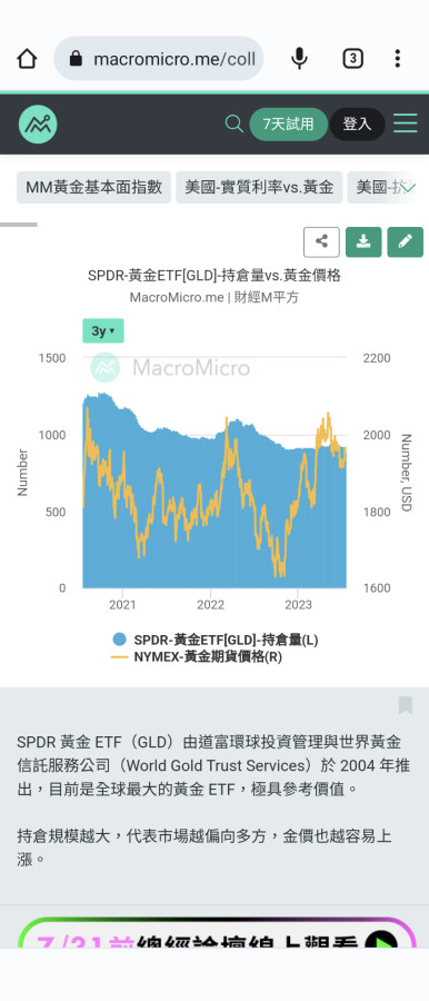 資訊裡面我抓下來做參考,內文蠻長的,挑重點:黃金ETF的黃金持倉量增加會推動黃金價格上漲,而黃金ETF的黃金持倉量下降會打壓黃金價格。