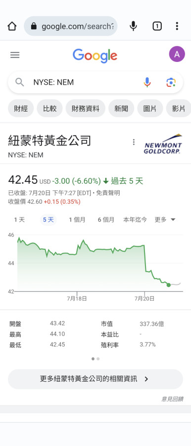 "黃金產量令人失望 全球最大黃金生產商股價特創下一年來最大跌幅"