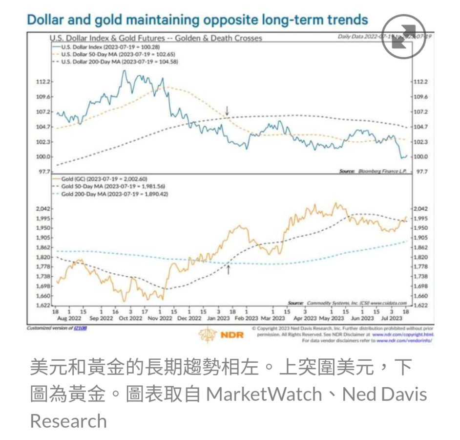 Ned Davis Research 全球首席投資策略師 Tim Hayes 最近便把美元建議評等,從「中立」調降至「看空」,並把黃金從「中立」調升為「看多」。