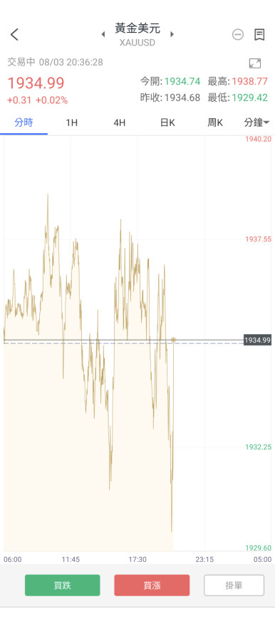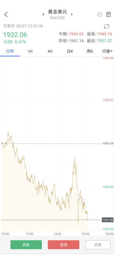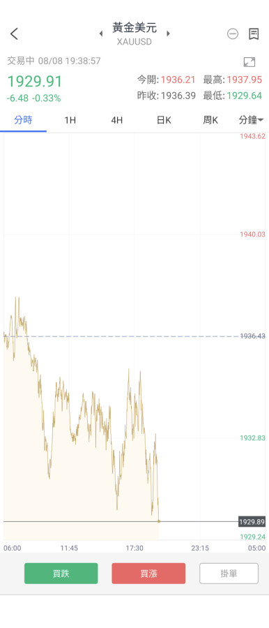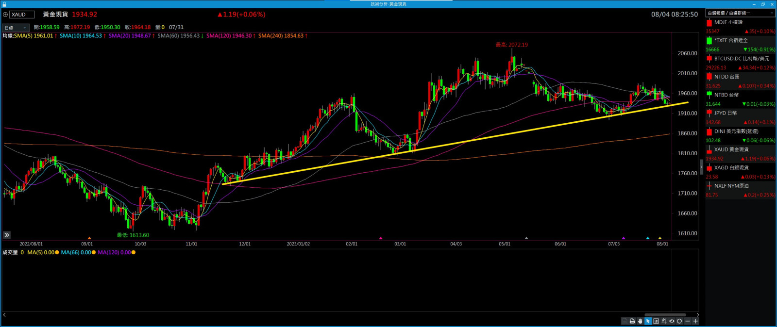 目前我關注的黃金金融商品尚處於下行階段! 是否止跌就必須再觀察一下了!