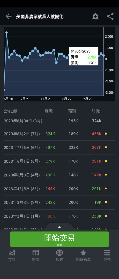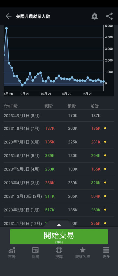 2月公佈1月大非農前黃金跌47元美金,公佈後再跌53元美金,2天跌100元美金,後面一直跌22天跌到1804元反彈,看這次的預測,感覺很容易優於預期,會不會再次跌100元美金就不知道了,隨時要觀察預期的變動了😁.