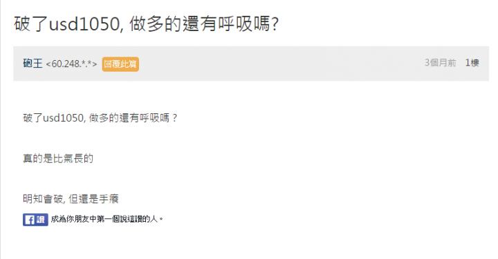 回覆 滑板變機車:就算有一天跌破1080,我還會再加碼!!...