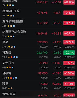 回覆 嗨爪主席:昨晚週二 美股收紅...