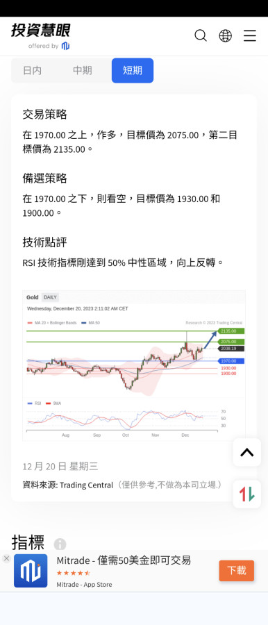 雖然美元指數上升,黃金實在很堅挺,壓不太下😓